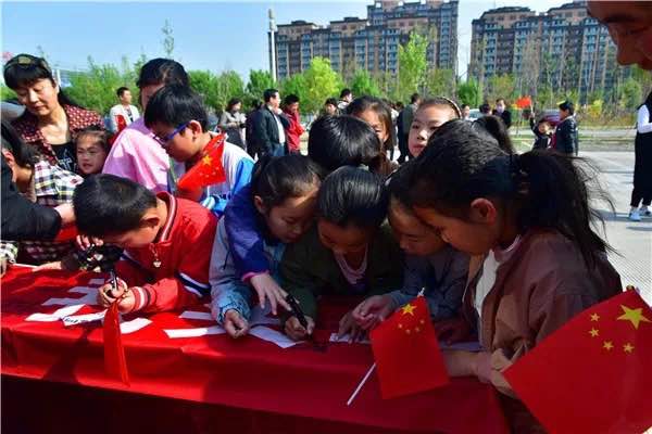 開幕儀式尾聲廣大讀者和學(xué)生紛紛在萬米長卷上簽下自己的名字和喜愛的圖書,以此來表達(dá)對圖書的熱愛。