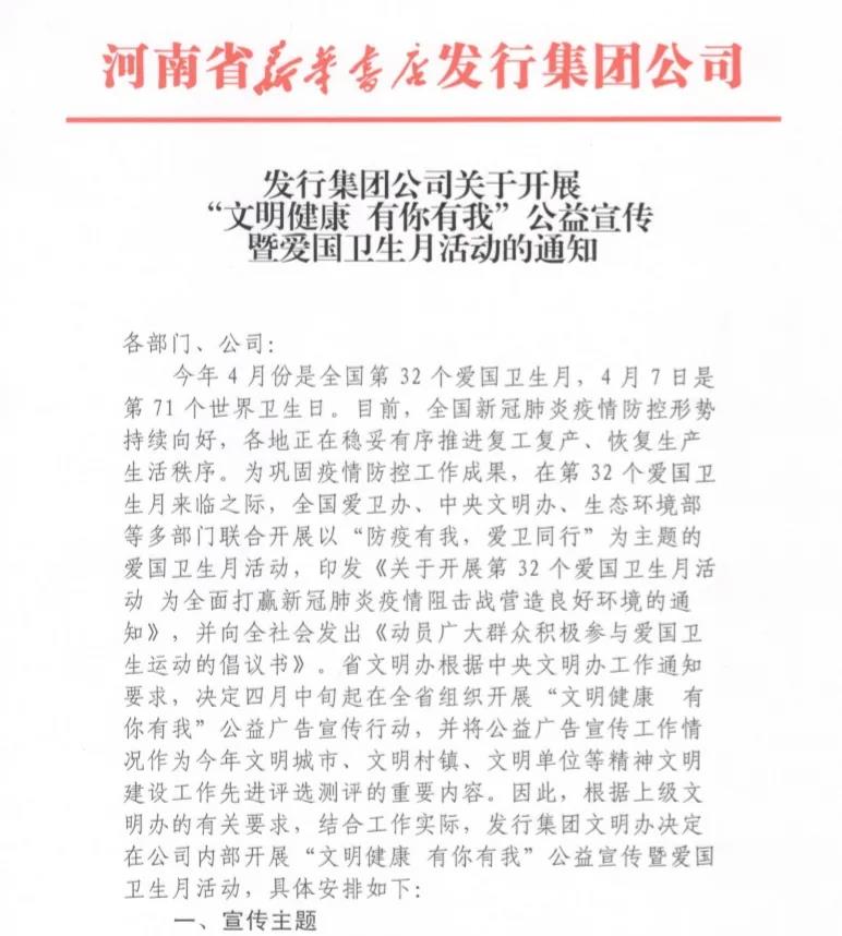 為響應(yīng)鄭州市委、市文明辦關(guān)于深入推動(dòng)《鄭州市文明行為促進(jìn)條例》實(shí)施,力促市民文明健康生活習(xí)慣養(yǎng)成,助推全國(guó)文明城市創(chuàng)建,不斷提升城市文明程度的倡議,河南省新華書店發(fā)行集團(tuán)根據(jù)上級(jí)文明辦統(tǒng)一要求,結(jié)合本單位工作實(shí)際,開展了“做文明有禮鄭州人 為文明城市添光彩”等一系列文明踐行活動(dòng)。