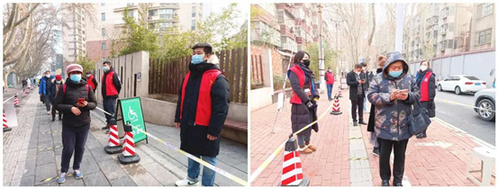 發(fā)行集團(tuán)志愿者不畏寒冷,按照要求提前趕到采樣點(diǎn),做好服務(wù)準(zhǔn)備工作。采樣期間,志愿者們根據(jù)工作分工,有的負(fù)責(zé)引導(dǎo)市民、維護(hù)現(xiàn)場(chǎng)秩序,提醒大家保持“一米線”距離,有序檢測(cè),同時(shí)解答群眾詢問;有的志愿者專門負(fù)責(zé)把守等候區(qū),將排隊(duì)人員10人歸為一組,有序前行進(jìn)行掃碼確認(rèn),到達(dá)核酸集采處完成采樣。中午時(shí)分,志愿者輪流就地用餐,工作不曾停歇,忠誠(chéng)值守完成當(dāng)天工作任務(wù)。