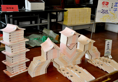 此次圖書發(fā)行員技能大賽是市總工會和新華書店第五次聯(lián)合舉辦技能大賽,與住屆大賽相比,今年的比賽難度和準備工作量增加了,可選手們的自信心和熟練程度卻一點沒減。在比賽現(xiàn)場,當裁判員的開始指令發(fā)出后,臺下選手啞雀無聲,選手們一個個都能鍵指如飛、緊張熟練地將規(guī)定內(nèi)容輸入電腦,現(xiàn)場只有“嗒嗒嗒”的敲擊鍵盤的聲音,在圖書推介比賽項目中,每位選手都能結(jié)合自己推介的圖書特點,向現(xiàn)場觀眾進行全面、詳細的推介介紹,贏得了大家熱烈的掌聲,售書連續(xù)作業(yè)主要考核比賽選手的操作準確度和連慣性,選手們都能做到計價、收款、開票、包扎四個過程一氣呵成,規(guī)定五分鐘的比賽操作,最快的選手僅用了兩分多鐘就全部完成;在圖書造型項目中,比賽選手各顯神通,充分發(fā)揮自己的想象能力,精心設計、“建造”出別出心裁的造型:有宏偉穩(wěn)固的高塔、有具有詩意的小橋流水、青蛙戲水、有氣勢宏大的古城建筑、也有設計巧妙的龍舟,還有用圖書拼出的文字“十八大”等,有的圖書造型文化氣息濃厚,有的造型突現(xiàn)時代特征,給人以強烈的視覺沖擊力,全面體現(xiàn)了圖書的文化產(chǎn)品特點。