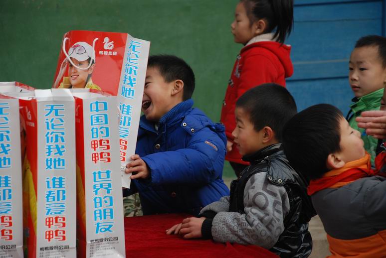 據(jù)悉,中原出版?zhèn)髅郊瘓F(tuán)在向團(tuán)員青年發(fā)出號召后,共接到款項(xiàng)2萬余元,為一五三小學(xué)貧困生捐贈了12件羽絨服和5臺電腦;顒又校鱿瘍x式領(lǐng)導(dǎo)為孩子們穿上了厚厚的羽絨服,使孩子們深切地感受到了團(tuán)組織的關(guān)心和溫暖。