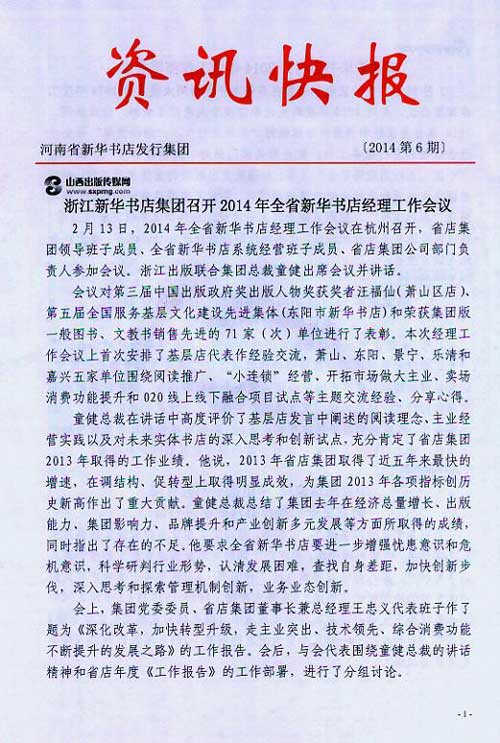 來源:河南省新華書店發(fā)行集團有限公司  作者:河南省新華書店發(fā)行集團有限公司  發(fā)布時間:2014/2/27 9:09:51  閱讀次數(shù):10819