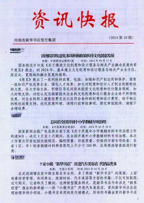 來源:河南省新華書店發(fā)行集團有限公司  作者:河南省新華書店發(fā)行集團有限公司  發(fā)布時間:2014/3/19 10:08:34  閱讀次數(shù):13394