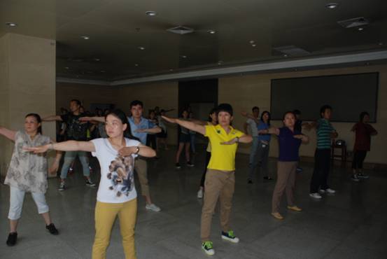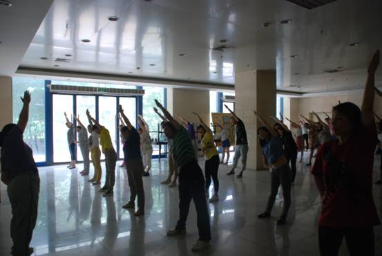 發(fā)行集團公司在開展黨的群眾路線教育實踐活動中,積極響應廣大職工群眾訴求,豐富職工文化生活,認真貫徹落實全民健身計劃,從7月份起,組織本部員工開展了工間操活動,工間操選用的國家體育總局正式發(fā)布的第九套廣播體操。此項活動得到了廣大職工的積極響應和熱情參與,大家就近在走廊或辦公室等地,在輕快優(yōu)美的旋律下,認真按標準做好每一個動作,舒展四肢、鍛煉身體,消除亞健康狀態(tài)。通過開展工間操活動,增進了廣大職工身心健康,削除了疲勞,提高了工作效率,也培養(yǎng)了員工的團隊精神,營造了和諧健康的企業(yè)文化氛圍。