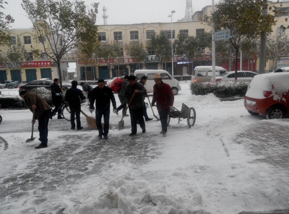 1123日,南樂縣普降大雪。 1124日上午,縣店員工自發(fā)開展掃雪活動(dòng)。然而,有限工具,呼呼的北風(fēng)和零下的低溫,并沒有影響職工們的熱情。經(jīng)過(guò)兩個(gè)小時(shí)的奮戰(zhàn),此次掃雪任務(wù)圓滿完成。
