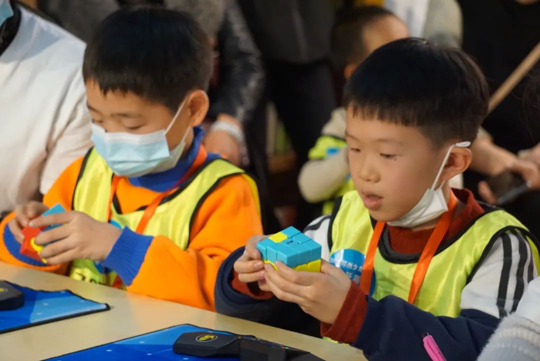 賽場(chǎng)上,風(fēng)云突變,只見一群00后的“少俠們”玩轉(zhuǎn)指尖藝術(shù),用他們的掌上功夫為現(xiàn)場(chǎng)各位家長(zhǎng)奉獻(xiàn)了一場(chǎng)驚心動(dòng)魄的魔方大賽。