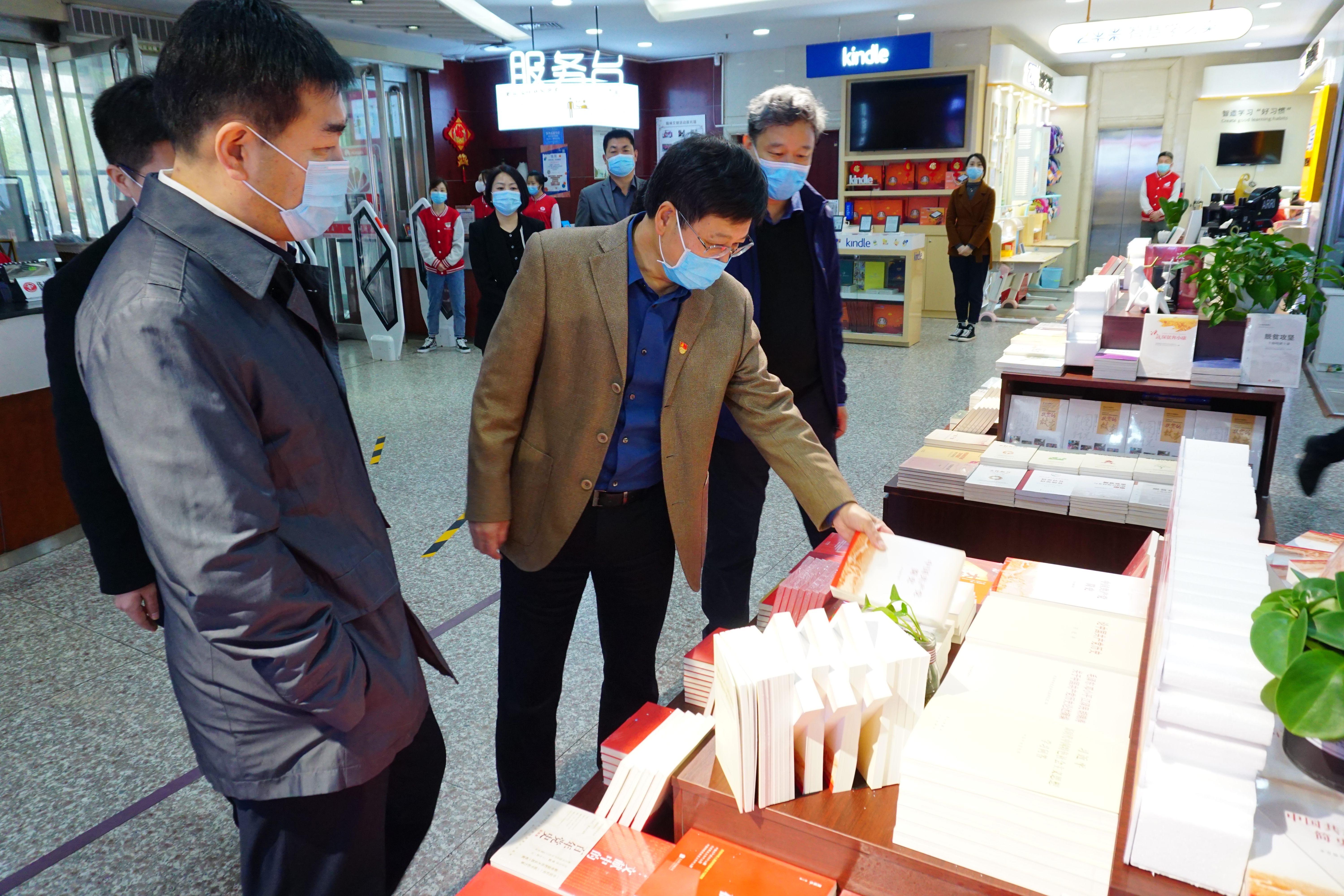 活動(dòng)期間,譚福森一行參觀了“慶祝中國(guó)共產(chǎn)黨成立100周年”主題書展。河南省新華書店作為黨的宣傳思想文化和意識(shí)形態(tài)的重要陣地,主動(dòng)融入全黨黨史學(xué)習(xí)教育,統(tǒng)籌線上線下渠道,重視宣傳發(fā)行工作,積極深入農(nóng)村、社區(qū)、學(xué)校、機(jī)關(guān)、企業(yè)、軍營(yíng)開(kāi)展學(xué)習(xí)圖書供應(yīng)服務(wù),實(shí)現(xiàn)了全省各地黨政機(jī)關(guān)黨員全覆蓋、基層黨組織全覆蓋和農(nóng)家書屋全覆蓋,推動(dòng)黨史學(xué)習(xí)教育深入基層、深入群眾、深入人心,為滿足全省人民學(xué)習(xí)需要做出了積極貢獻(xiàn)。