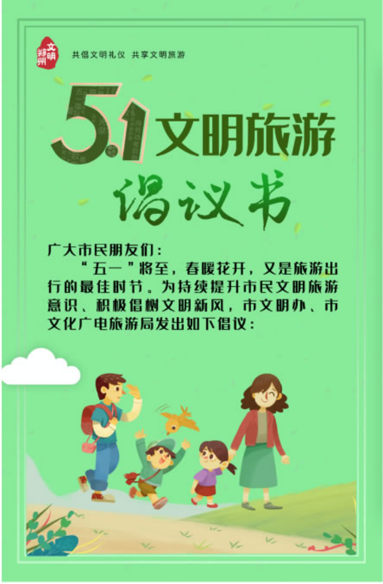 鄭州市文明辦市文化廣電和旅游局“五一”文明旅游倡議書