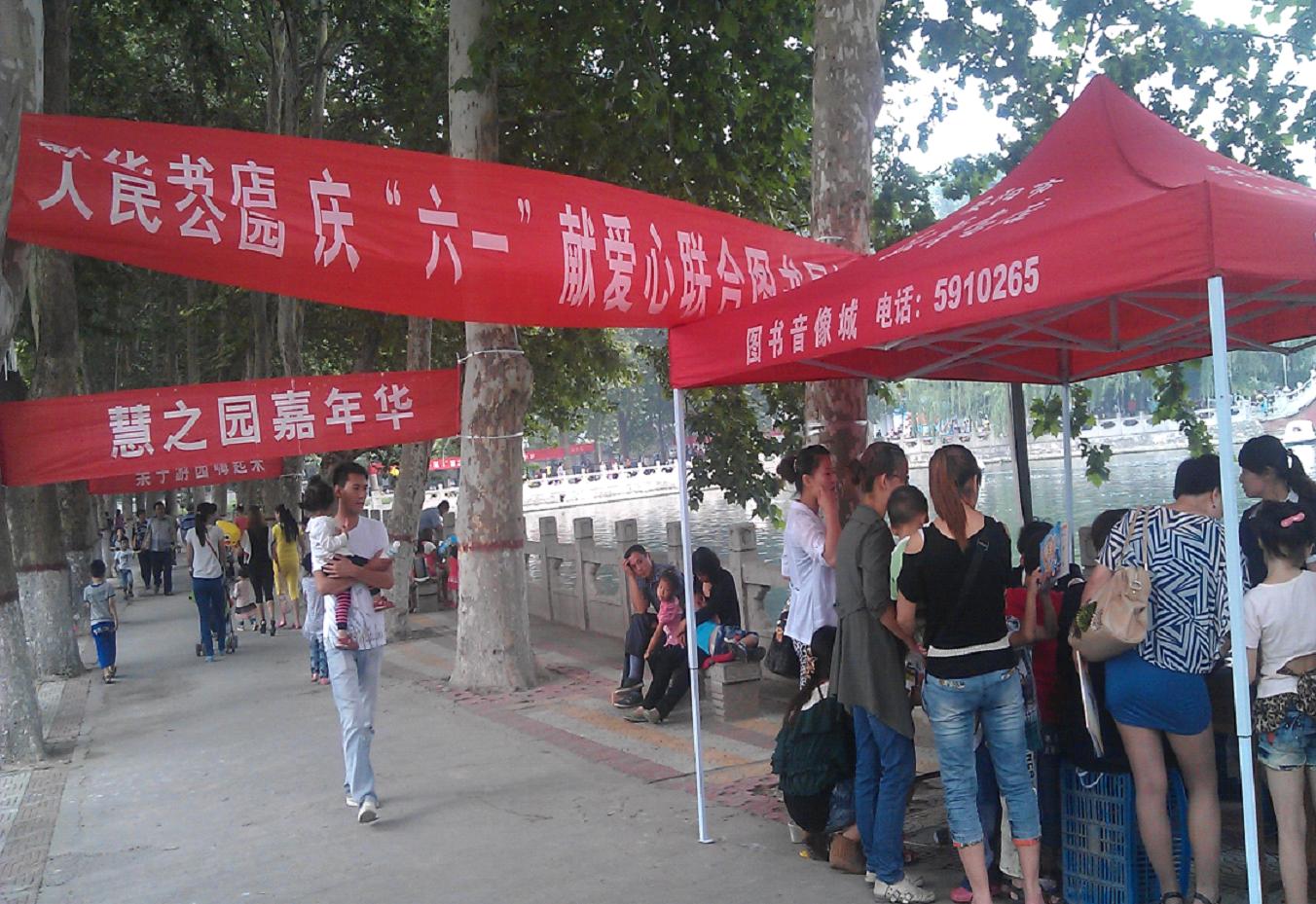 為慶!傲弧眹H兒童節(jié),安陽市店圖書音像城積極和市人民公園聯(lián)系,在6月1日到6月3日期間,聯(lián)合舉辦了為期三天的慶“六一”獻(xiàn)愛心圖書大展銷活動(dòng)。
