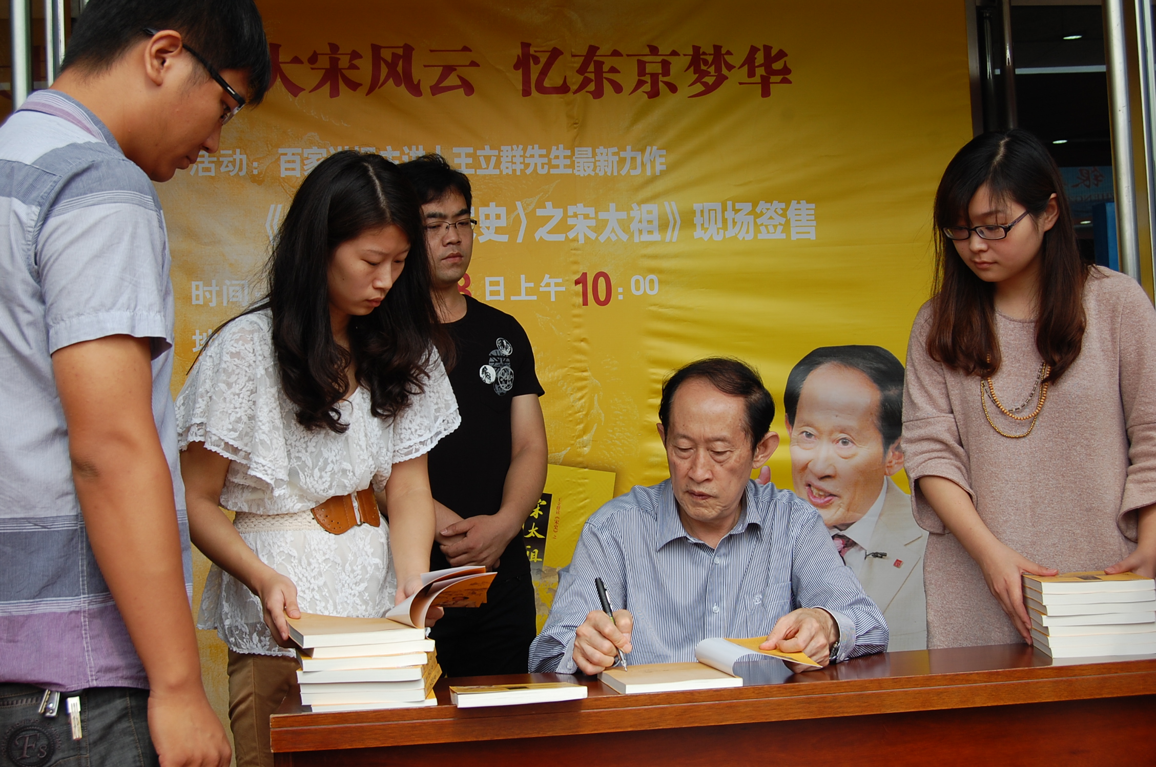 上午,河南大學(xué)教授、“百家講壇”主講人王立群先生,攜新作《王立群讀宋史之<宋太祖>》在中原圖書大廈舉行新書見面會。在現(xiàn)場,數(shù)千名讀者排隊等候,還有很多喜愛和關(guān)注王立群的讀者朋友從全省各地趕來,想在第一時間看到新書,和大師面對面交流。由于簽售現(xiàn)場異;鸨蜔崃,活動一直持續(xù)至中午,長達(dá)3個小時。