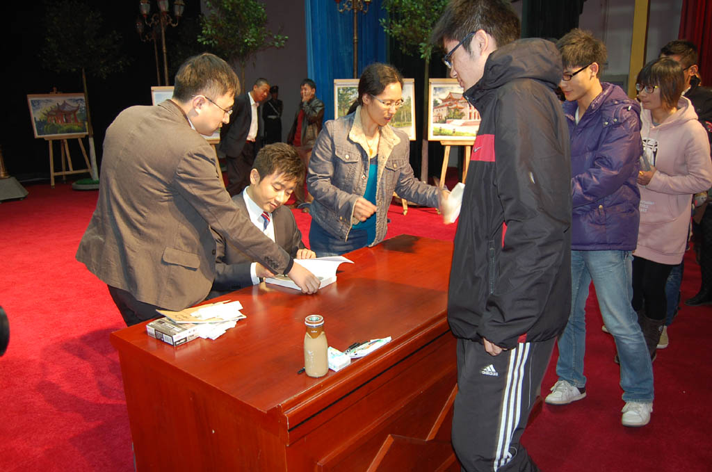 11月23日,央視著名主持人芮成鋼將攜新書(shū)《虛實(shí)之間》來(lái)到河南大學(xué),開(kāi)展講座及簽名售書(shū)活動(dòng),與河南大學(xué)的學(xué)子們共話理想人生。講座從晚上7點(diǎn)開(kāi)始,持續(xù)到9點(diǎn)半,隨后進(jìn)行了近2個(gè)小時(shí)的簽售活動(dòng),中原圖書(shū)大廈精心準(zhǔn)備,積極宣傳,共簽售圖書(shū)899冊(cè)。