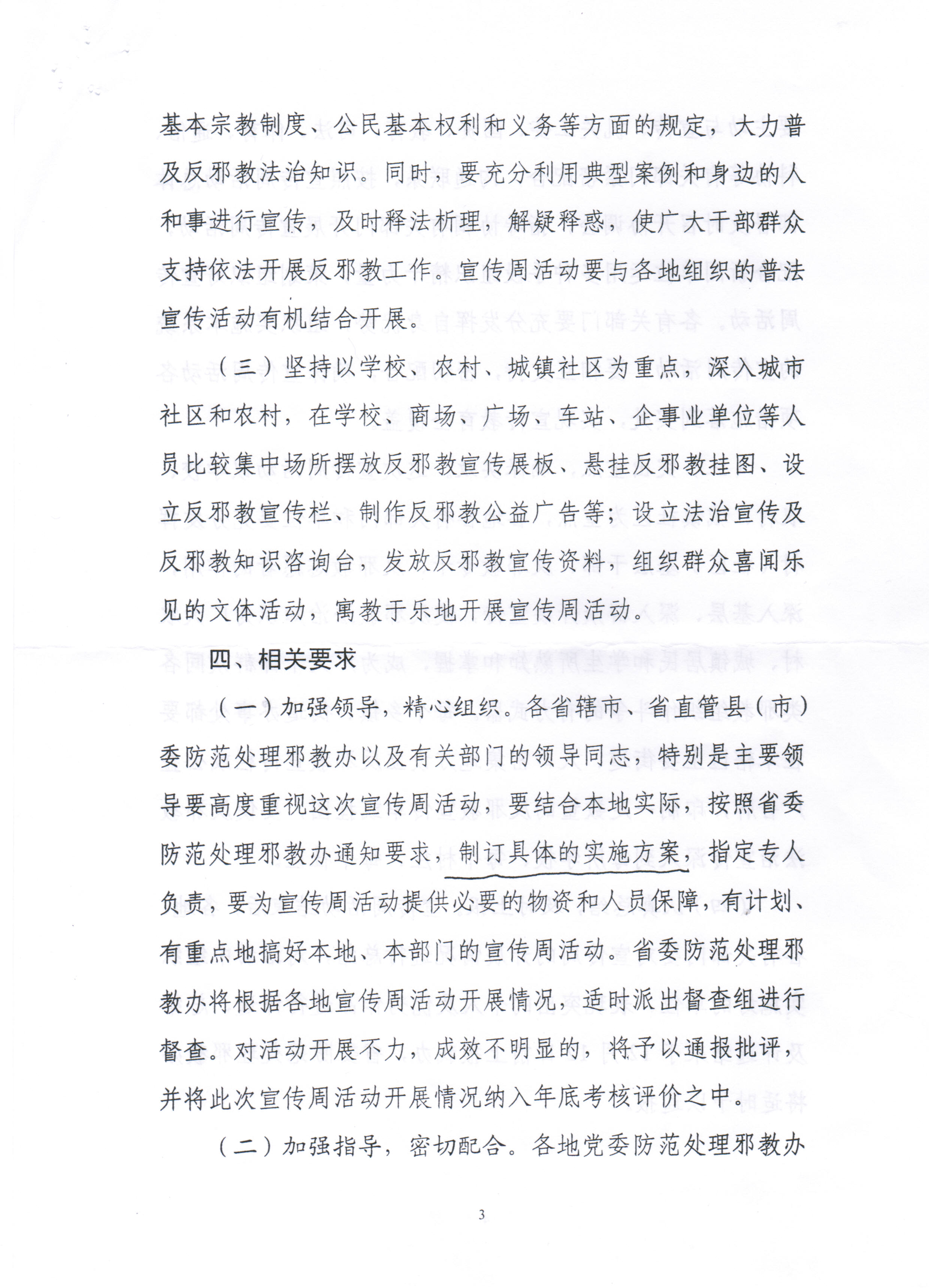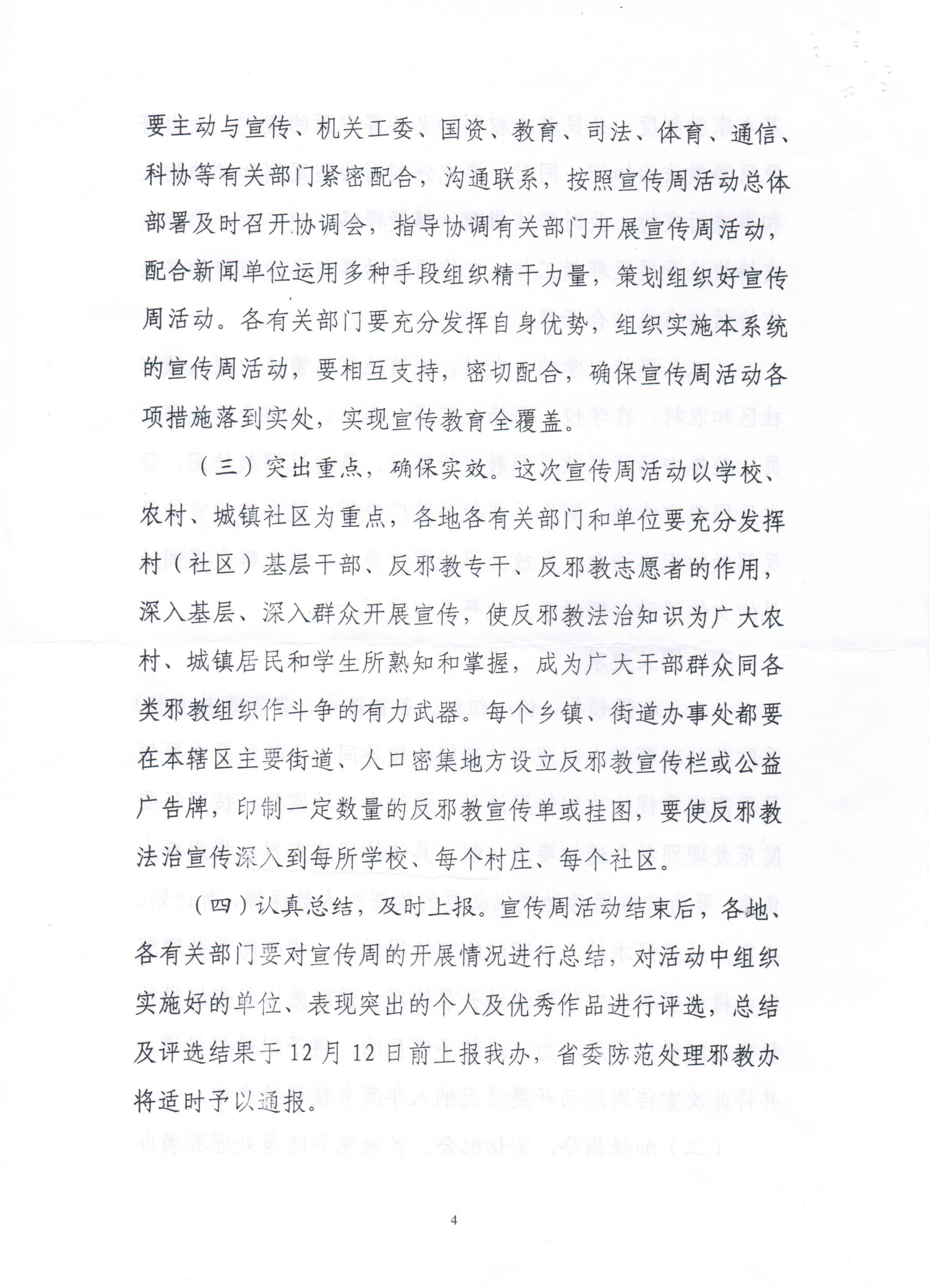 關(guān)于在全省開展反邪教法治宣傳周活動(dòng)的通知