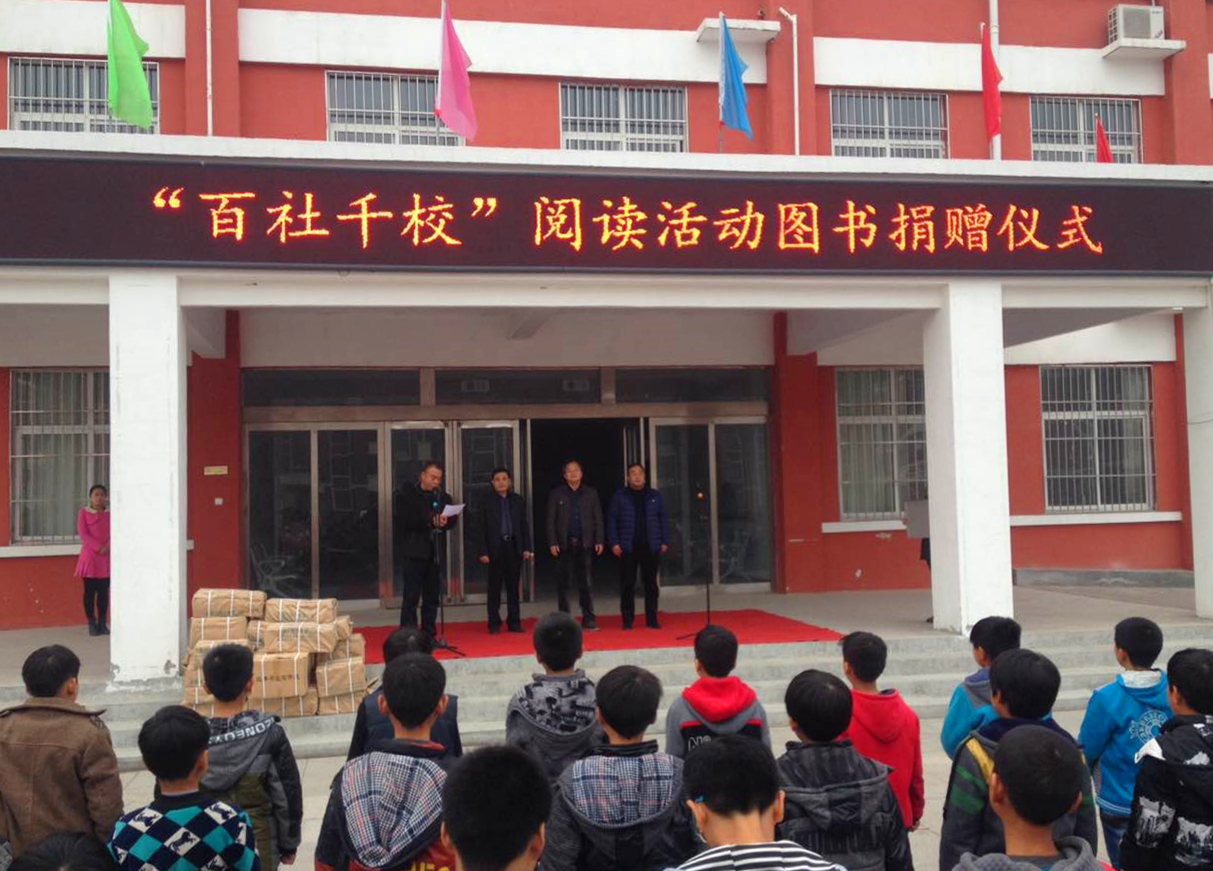近日,由大象出版社和輝縣市店聯(lián)合舉辦的“百社千校”閱讀活動(dòng)圖書捐贈(zèng)儀式在趙固中心校舉行,市委宣傳部、市教育局等部門出席儀式。
