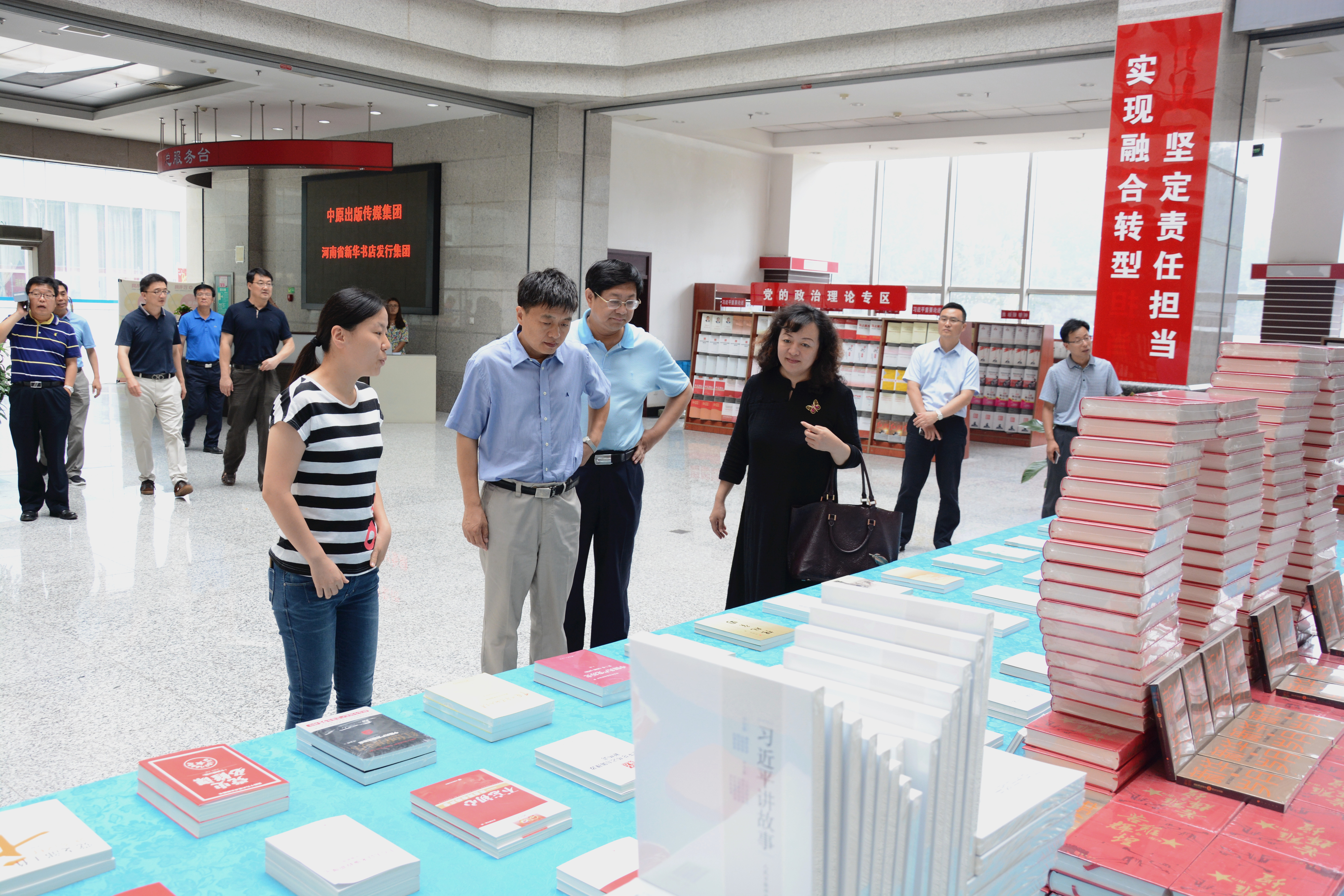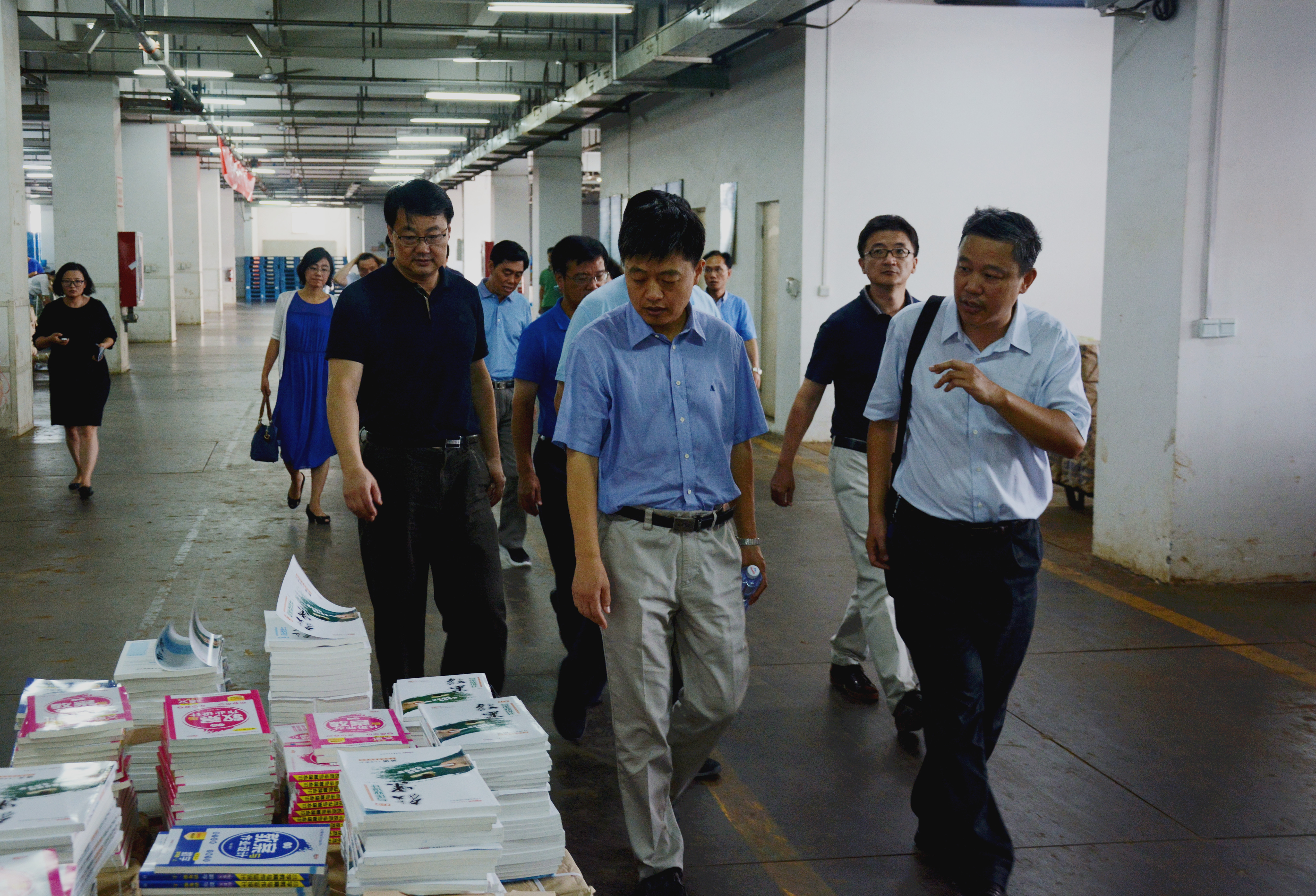 8月11日上午,教育部教材局副局長申繼亮,中國教育出版?zhèn)髅焦煞莨究偨?jīng)理于春遲,人民教育出版社黨委書記郭戈、副總編輯魏運(yùn)華、媒體宣傳部主任吳海濤、教材事業(yè)部副主任雷蕾一行蒞臨發(fā)行集團(tuán)考察調(diào)研。出版集團(tuán)總裁、副董事長、黨委副書記郭元軍、大地傳媒總經(jīng)理、發(fā)行集團(tuán)總經(jīng)理林疆燕、大地傳媒教材中心主任王黎明,發(fā)行集團(tuán)黨委書記宋保安、副總經(jīng)理亓新民、工會主席任振茂等陪同調(diào)研。調(diào)研期間,申繼亮副局長一行到河南出版物流中心考察教材發(fā)運(yùn)情況,到圖書樣本大廳、整體書房和云書網(wǎng)進(jìn)行參觀。參觀結(jié)束后在云書網(wǎng)召開座談會。會上,大地傳媒教材中心主任王黎明就今年河南省“三科”統(tǒng)編教材出版發(fā)行情況向申副局長一行做了詳細(xì)匯報。會上,申副局長對河南省教材出版發(fā)行工作給予高度認(rèn)可,指出中原出版?zhèn)髅郊瘓F(tuán)系統(tǒng)具有高度政治意識、大局意識、責(zé)任意識、擔(dān)當(dāng)意識,在“課前到書,人手一冊”政治任務(wù)落實(shí)上站位高;在教材出版發(fā)行推進(jìn)過程中細(xì)化管理機(jī)制效率高;在教材生產(chǎn)時間緊、任務(wù)重、標(biāo)準(zhǔn)高、要求嚴(yán)的前提下產(chǎn)品質(zhì)量高。申副局長強(qiáng)調(diào),出版集團(tuán)要認(rèn)真貫徹兩辦《關(guān)于加強(qiáng)和改進(jìn)新形勢下大中小學(xué)教材建設(shè)的意見》(中辦發(fā)﹝2016﹞66號),按照“統(tǒng)籌為主,統(tǒng)分結(jié)合”八字方針,完善教材管理機(jī)制,保證意識形態(tài)安全。會上,郭總裁對教育部、中國教育出版?zhèn)髅郊瘓F(tuán)、人民教育出版社長期以來對河南教材出版發(fā)行工作給予的關(guān)心和支持表示感謝。郭總裁指出,未來中原出版?zhèn)髅郊瘓F(tuán)在進(jìn)一步做強(qiáng)主業(yè)、多元發(fā)展、轉(zhuǎn)型升級、跨界融合的同時,會一如既往的堅(jiān)持把“課前到書,人手一冊”政治任務(wù)抓緊、抓實(shí)、抓到位。